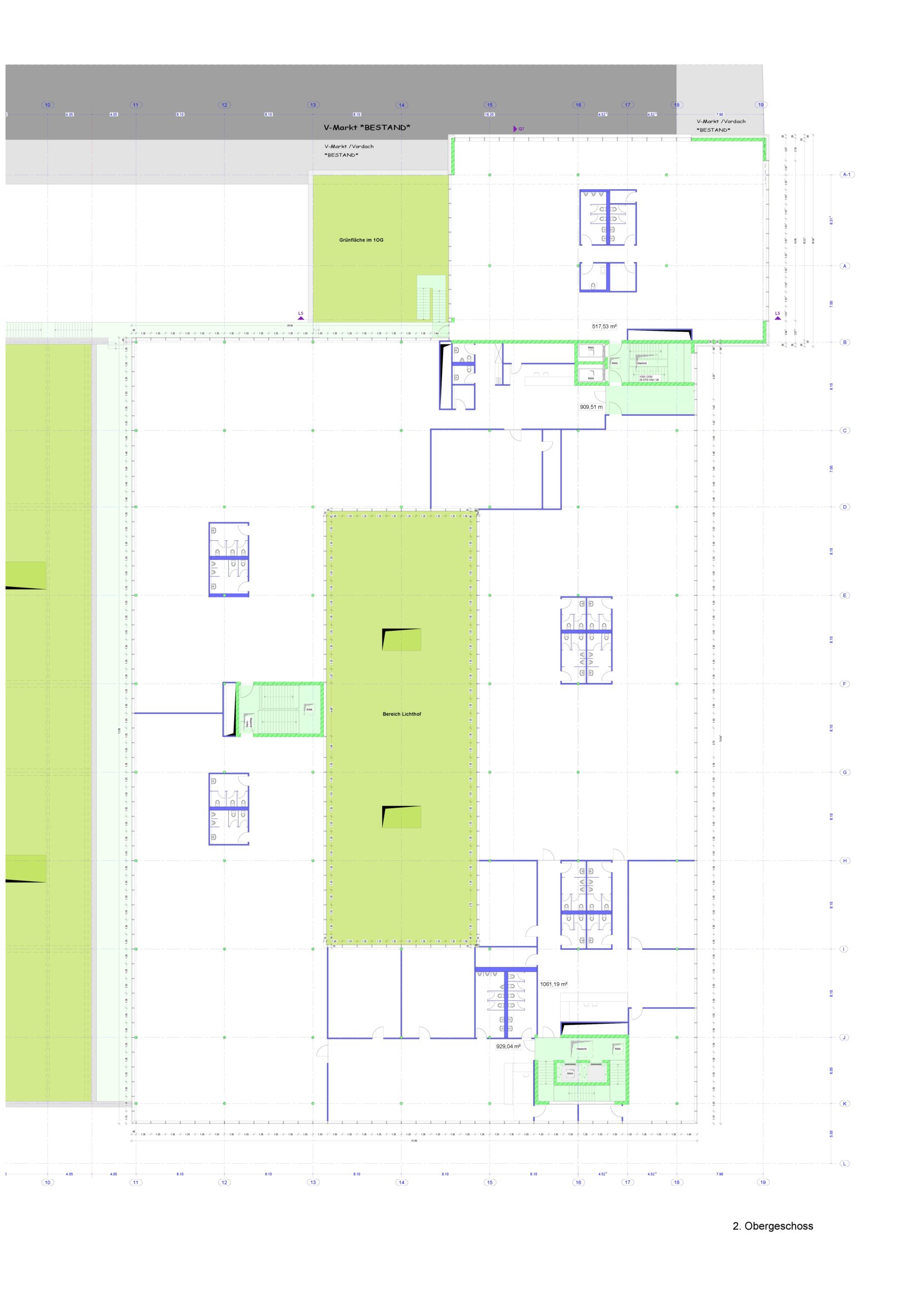 Im Erdgeschoß wird ein großer Baumarkt gebaut, im 1. und 2. OG entstehen Gewerbeflächen, die Einzeln (200 m²) oder Gesamt (6.000 m²) angemietet werden können. Die Flächenaufteilung und Raumausstattung kann flexibel nach Ihren Wünschen gestaltet werden. Eine vielseitige Nutzung (z.B. Büro, Praxis, Dienstleistungen usw.) ist denkbar. Durch die großen Fensterfronten und den Lichthof entsteht hier eine tolle Arbeitsatmosphäre.